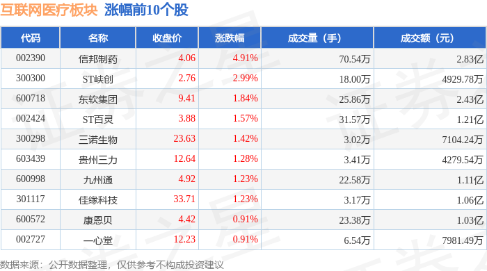 互联网医疗板块1月20日涨038%信邦制药领涨主力资金净流出316亿元